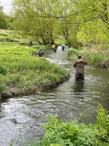 Our members "pitch in" alongside these partners, so work is typically jointly delivered. A For example, our recent collaboration with the Wild Trout Trust and the EA involved raising the river bed with fresh gravel and improving the stretch as fish habitat. This year we will continue the work of bringing light into over-shaded areas in other beats, in partnership with the North West Kent Countryside Partnership, to encourage the growth of ranunculus (water crowfoot), a vital food source for insects, fish and other wildlife